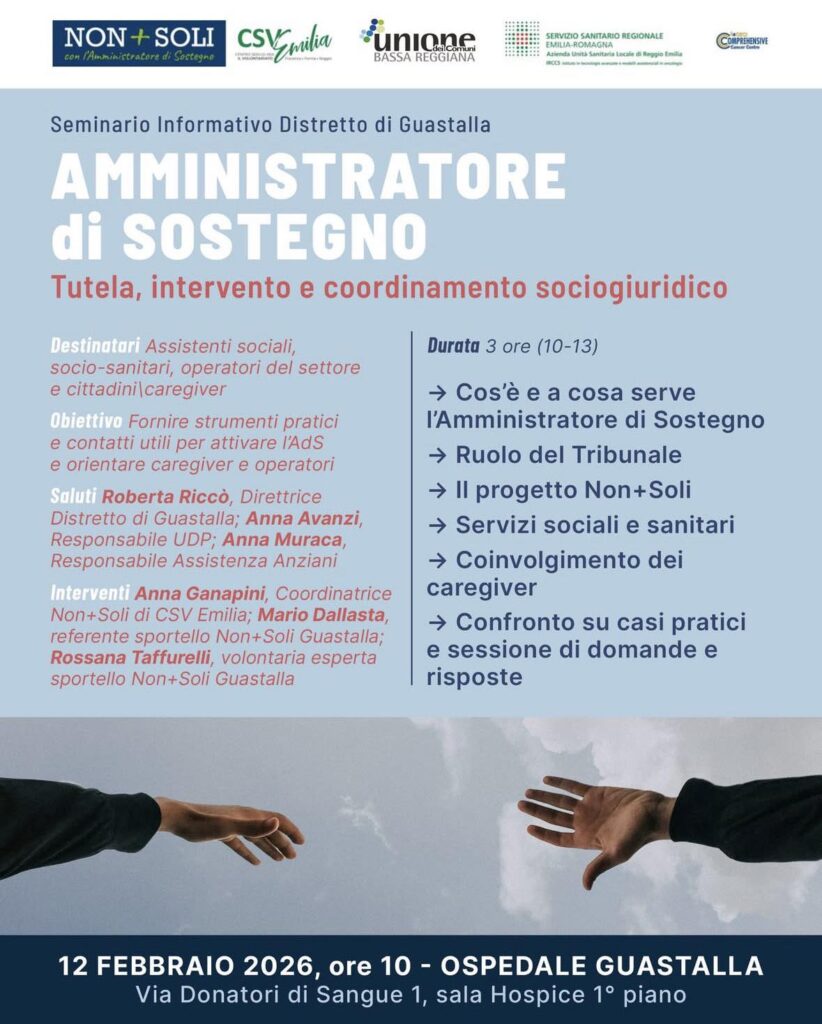 28 Gen Incontro informativo sull’Amministratore di Sostegno a Guastalla